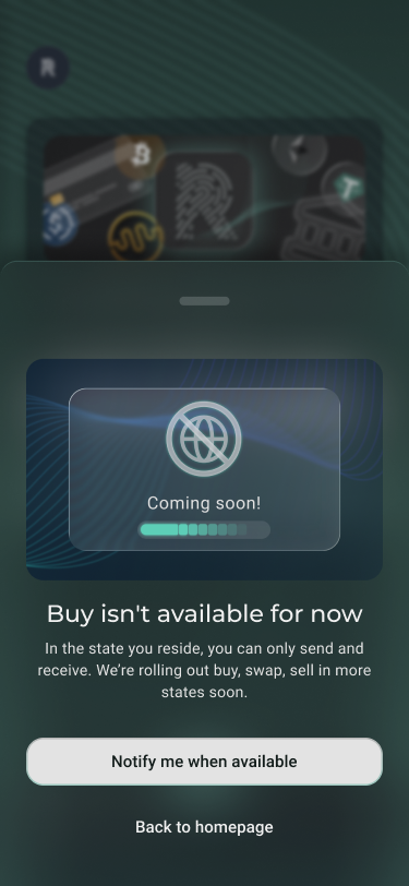 I worked on messages shown when users weren’t eligible for certain features or trade actions. In some cases I was allowed to write copy specific to the user’s verfication level and geolocation. Other times, this niche copy was descoped and I had to write versions that were intentionally generic. These flows required careful wording so users understood the outcome without feeling singled out or shut out forever.