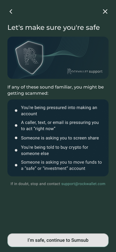 RockWallet had a growing number of product flows tied to compliance, banking partners, fraud prevention, and account security. These moments were important operationally, but from the user’s point of view, they could feel abrupt, vague, or even punitive.